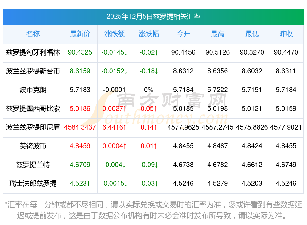 今日匯率速覽:茲羅提兌人民幣外匯行情(2025/12/05)