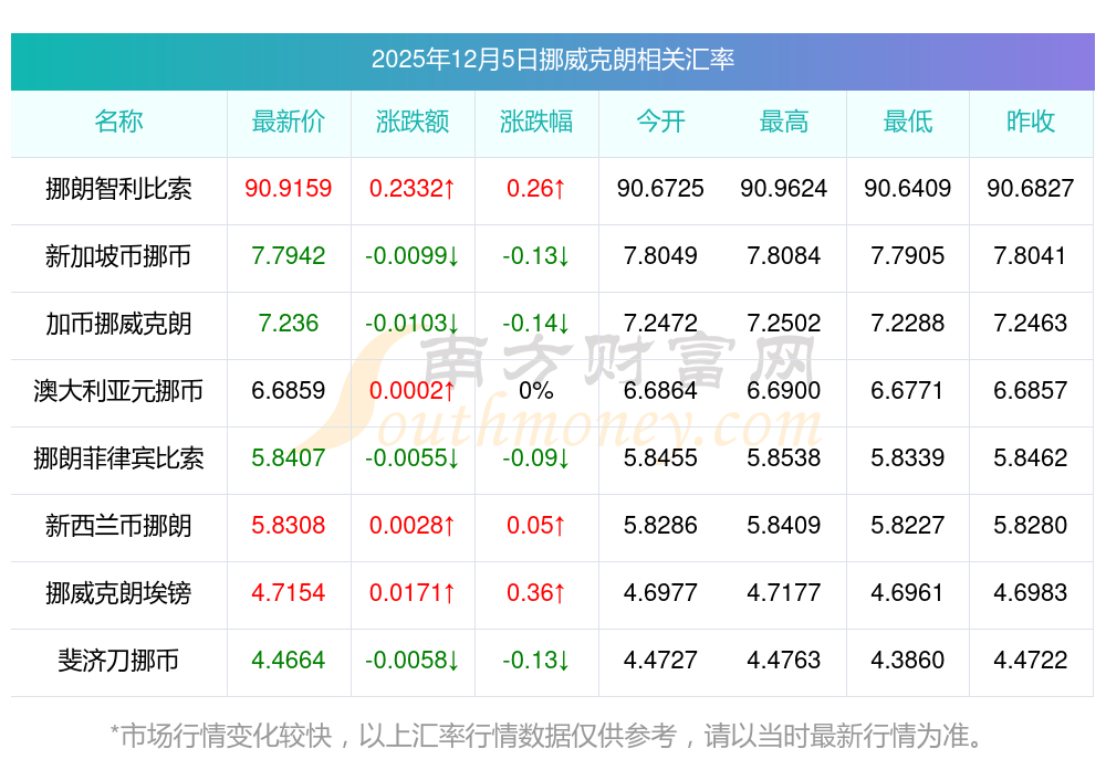 2025年12月5日挪威克朗相關(guān)匯率查詢
