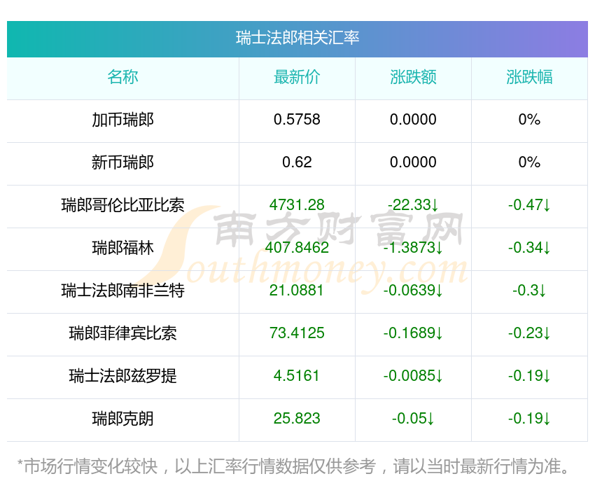 2025年12月5日瑞士法郎相關(guān)匯率查詢