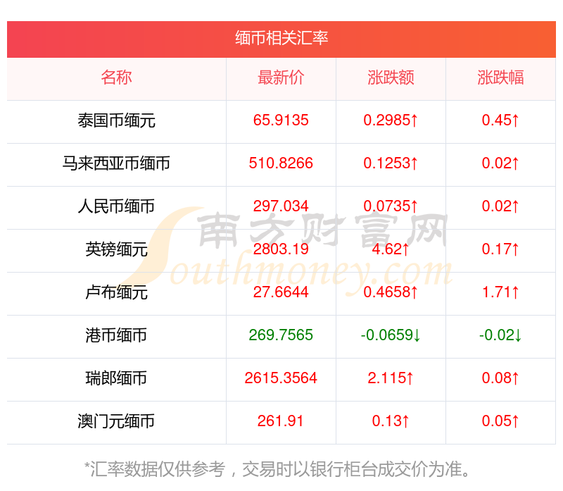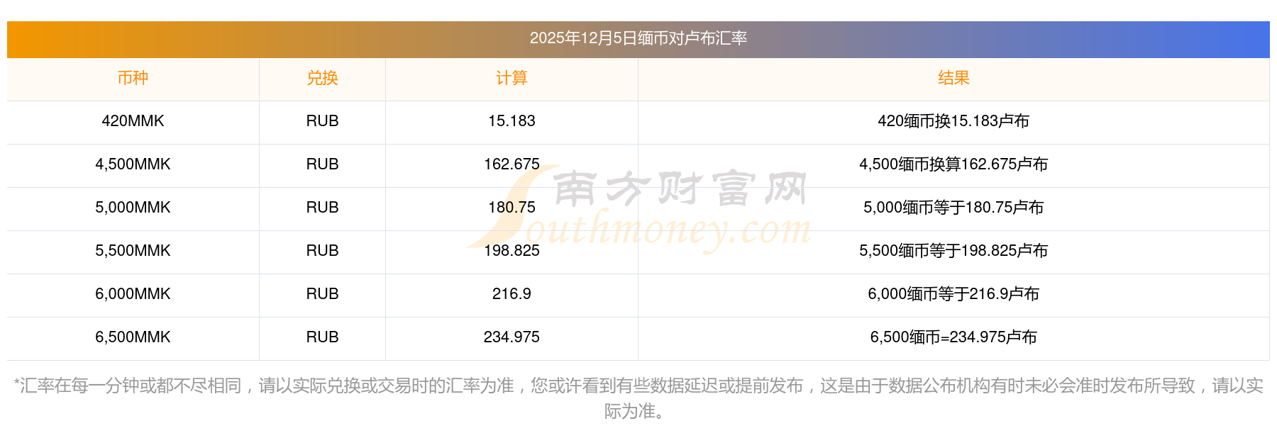 緬幣匯率一覽表 今日緬幣兌換盧布換算多少?12-5