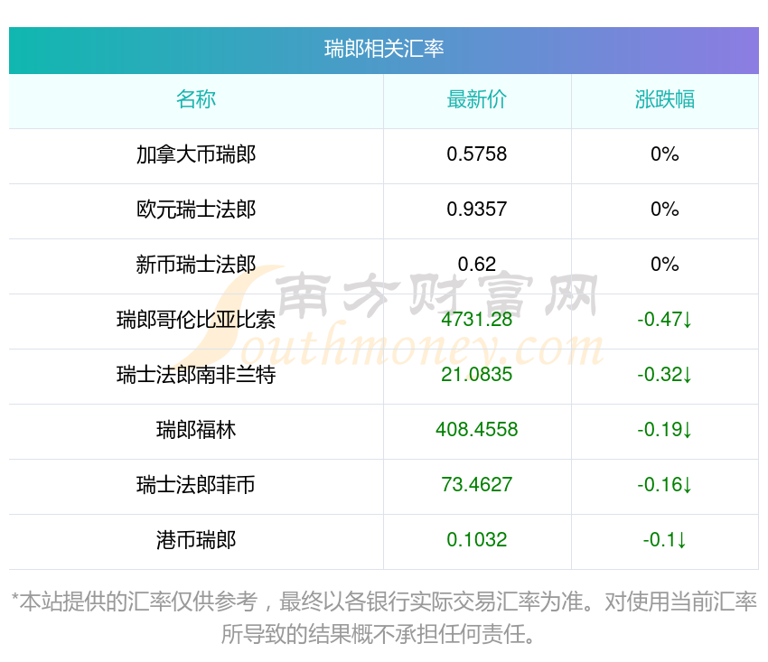 南方財富網(wǎng)為您提供瑞郎對斐濟刀匯率最新價格詳情。