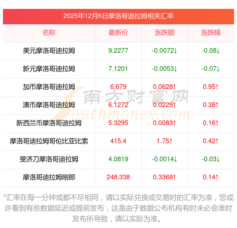 2025年12月6日摩洛哥迪拉姆相關匯率查詢