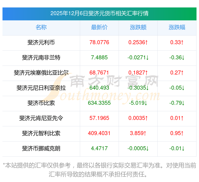 2025年12月6日斐濟(jì)元相關(guān)匯率查詢