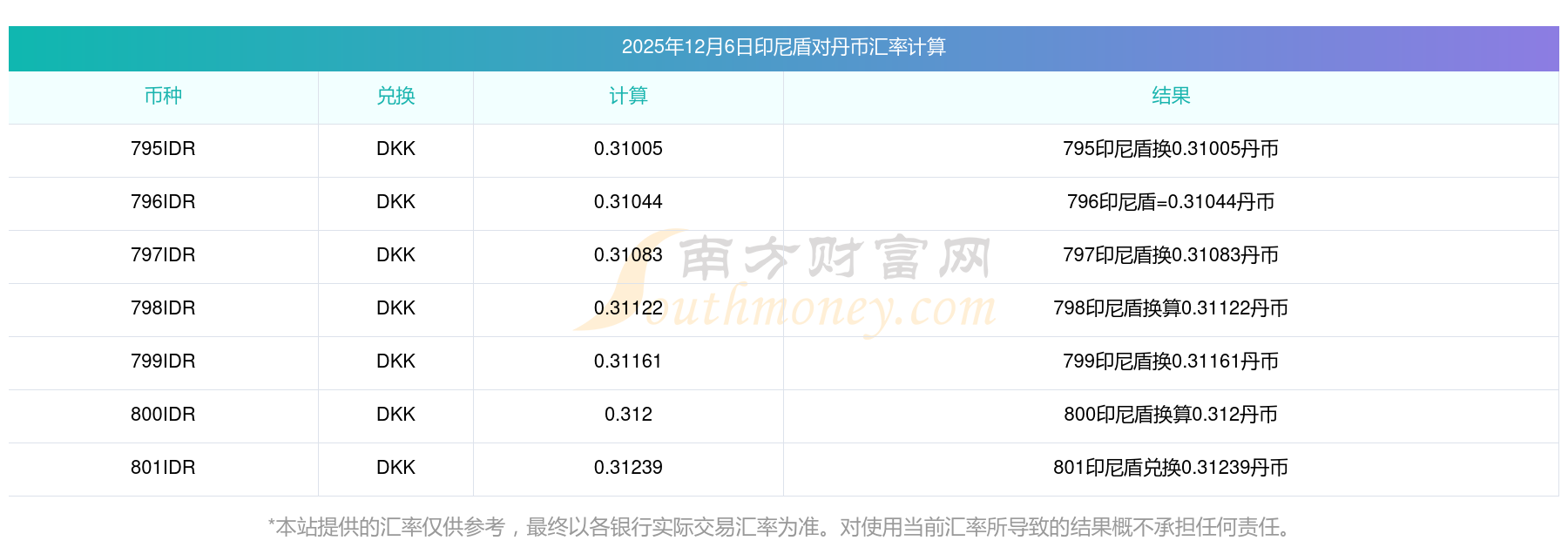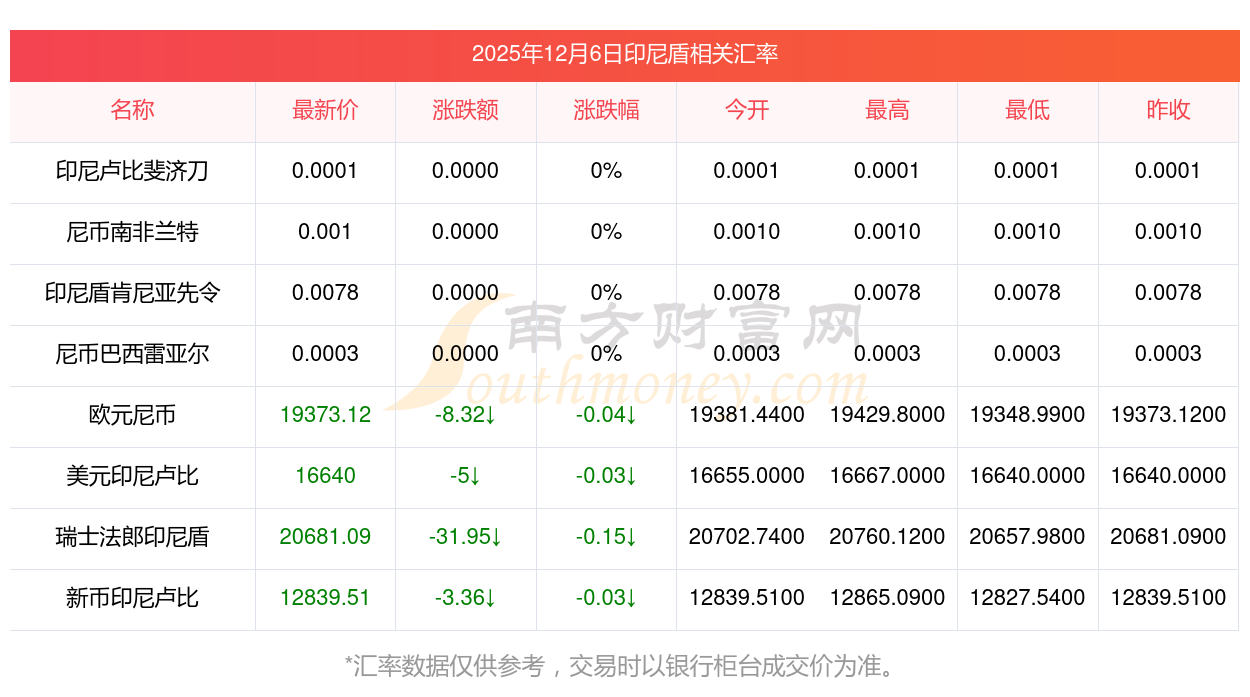 匯率查詢 | 印尼盾對丹幣匯率今日是多少? 2025-12-06