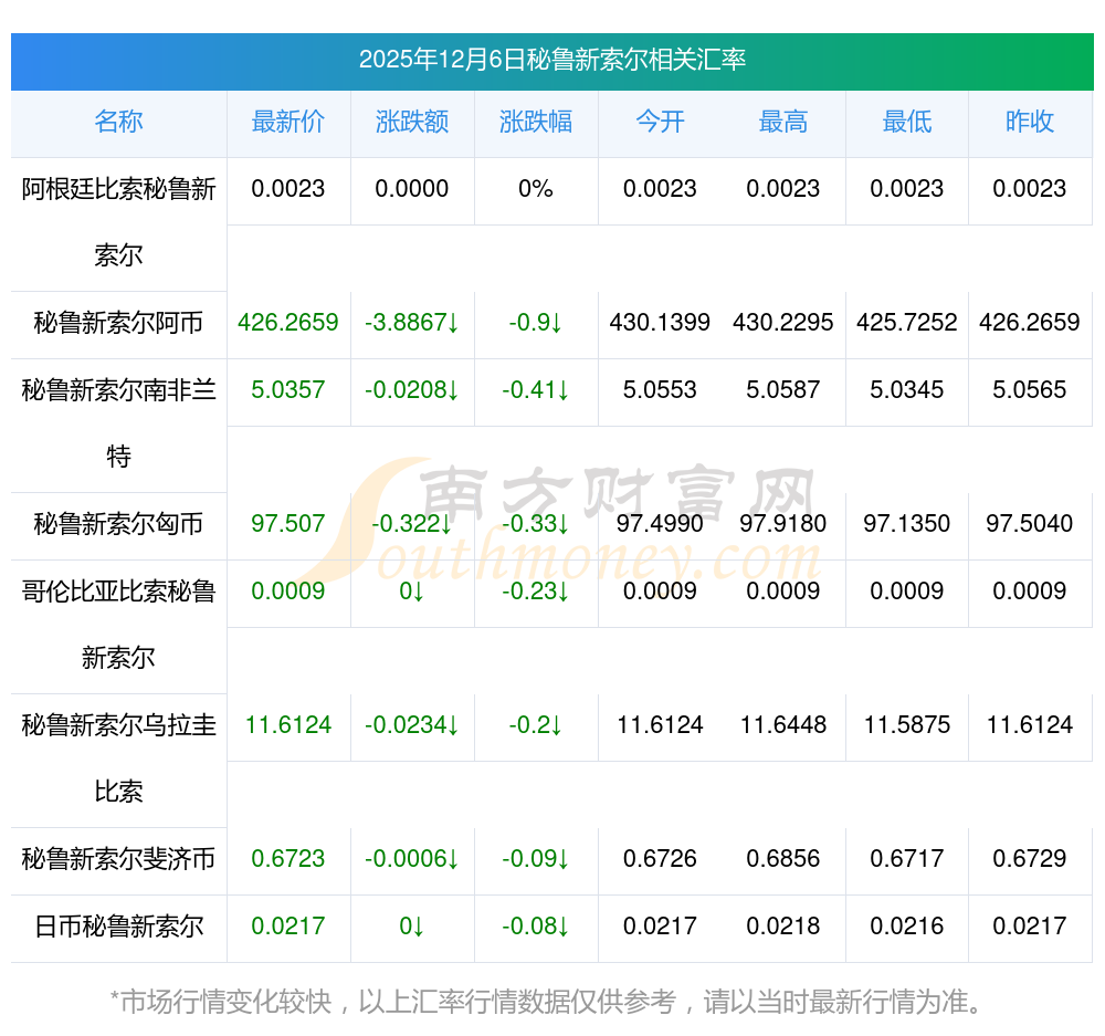 2025年12月6日秘魯新索爾相關(guān)匯率查詢