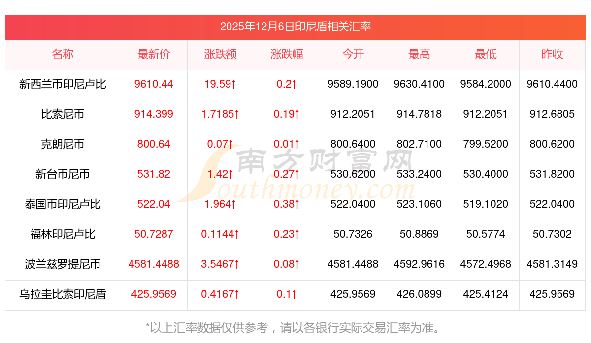 2025年12月6日印尼盾相關(guān)匯率查詢