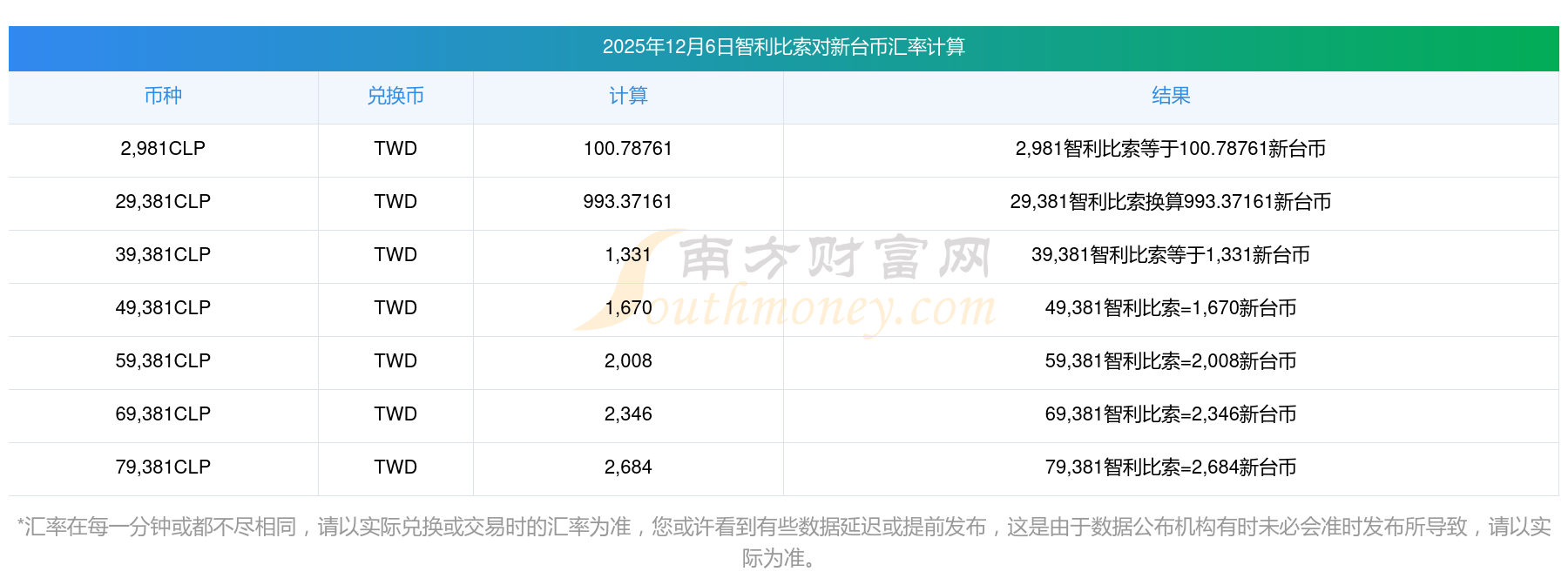 今日匯率表查詢 智利比索兌新臺幣是多少2025/12/06