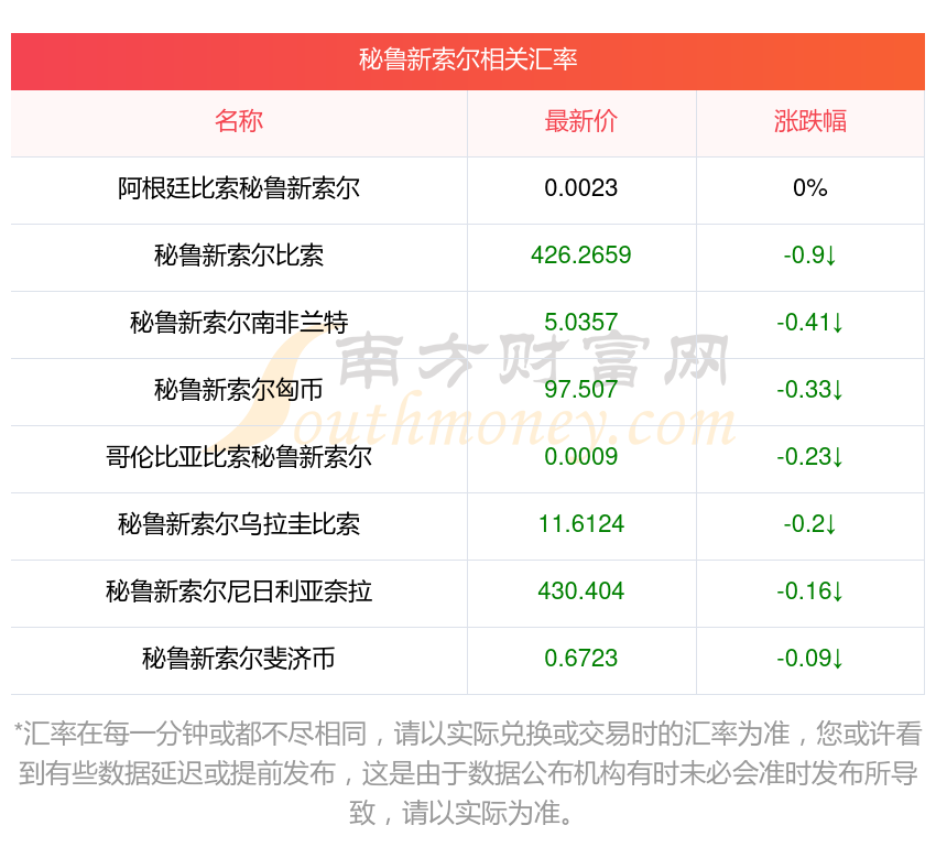 南方財富網(wǎng)為您提供秘魯新索爾對尼日利亞奈拉最新價格詳情。