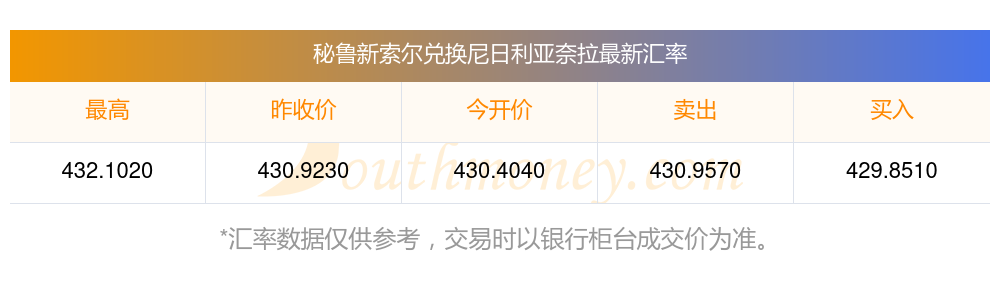 2025年12月6日秘魯新索爾兌換尼日利亞奈拉匯率是:430.404