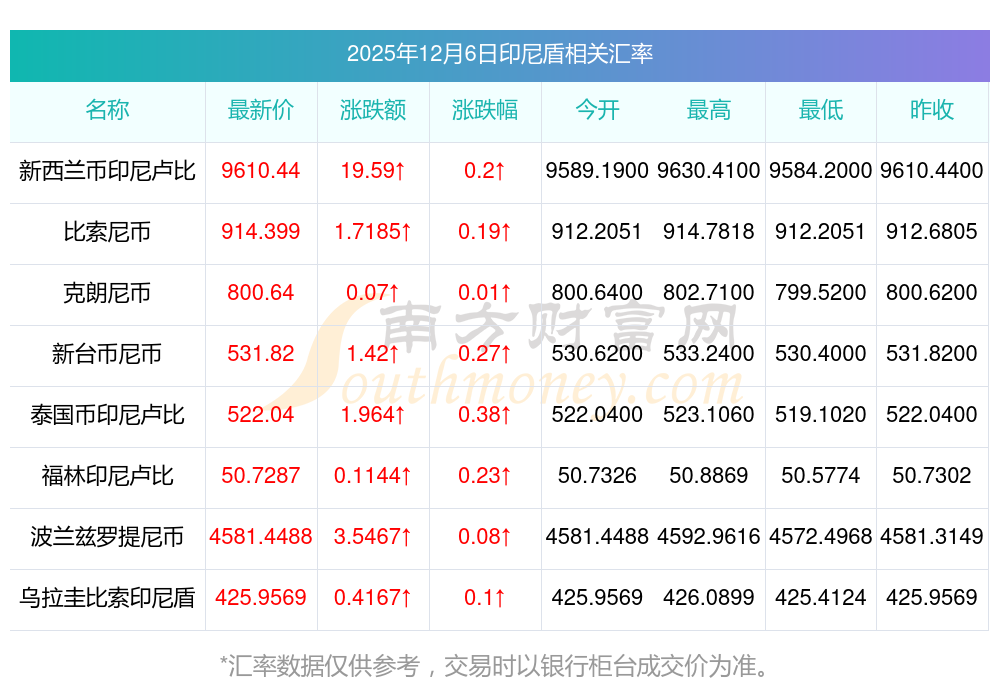 2025年12月6日印尼盾相關(guān)匯率查詢