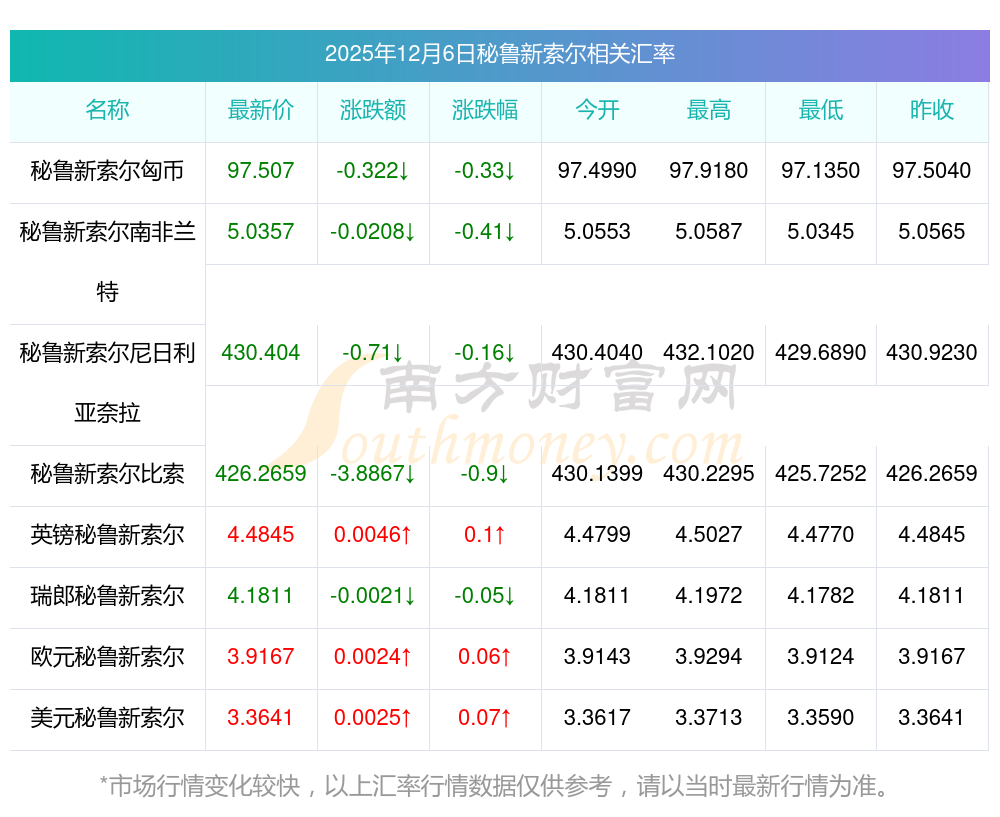 2025年12月6日秘魯新索爾相關(guān)匯率查詢