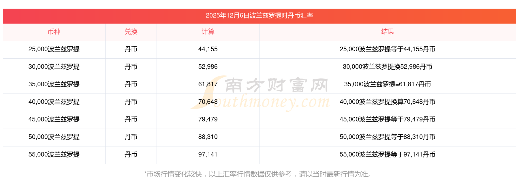 波蘭茲羅提今天折算成丹幣匯率行情表2025/12/6