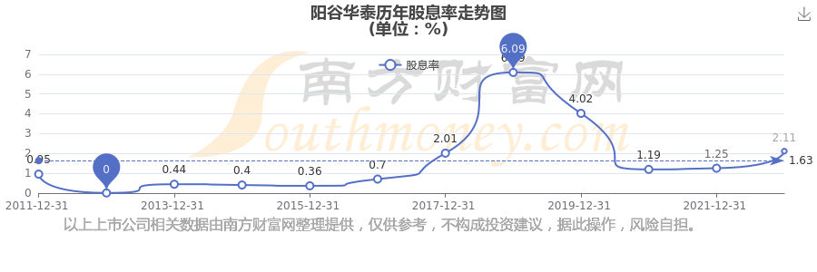近年陽(yáng)谷華泰年度股息率走勢(shì)如下圖: