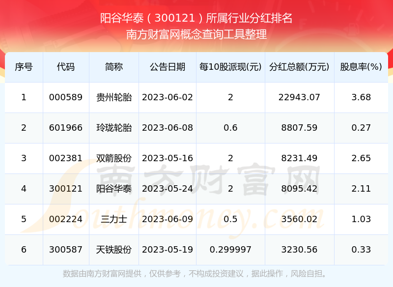 二、陽(yáng)谷華泰300121行業(yè)分紅排名