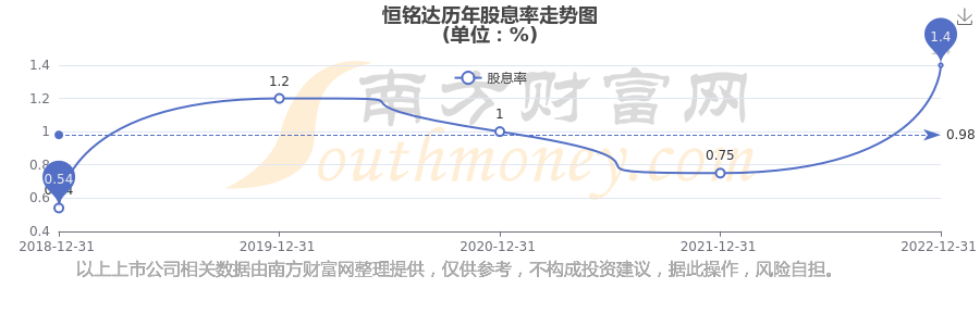 近年恒銘達(dá)年度股息率走勢如下圖: