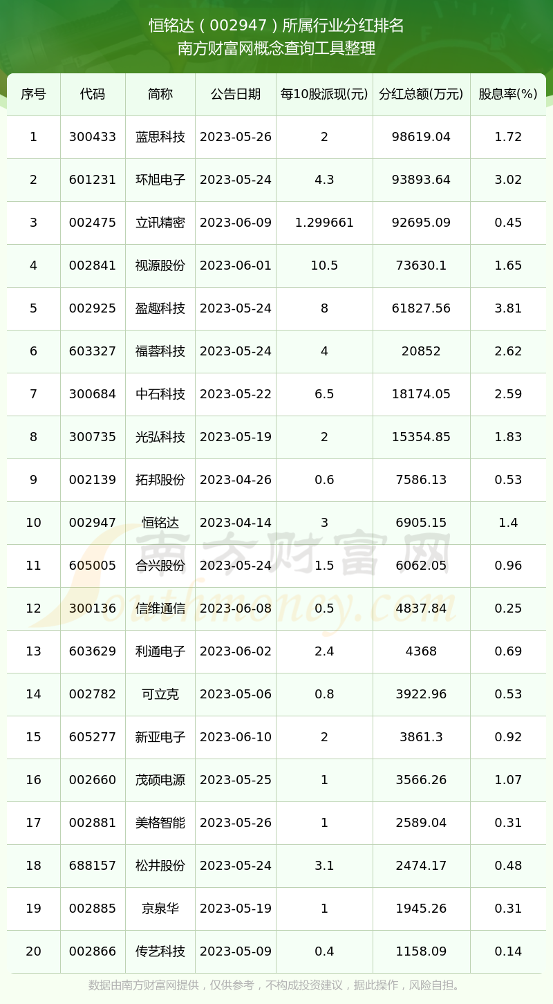二、恒銘達(dá)002947行業(yè)分紅排名