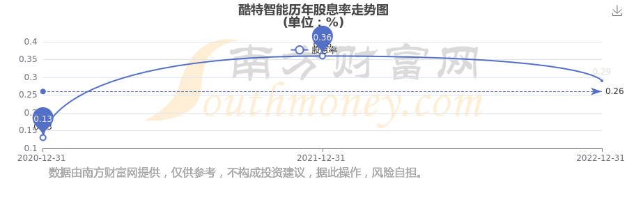 近年酷特智能年度股息率走勢如下圖: