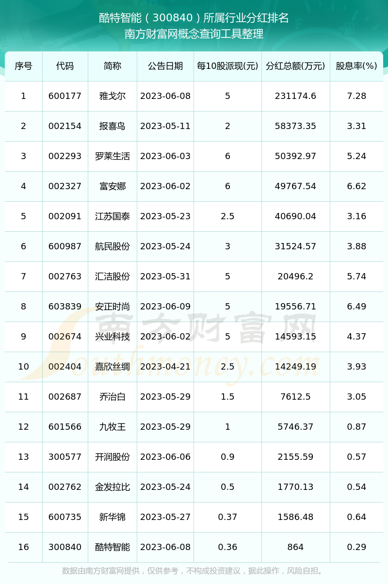 二、酷特智能300840行業(yè)分紅排名