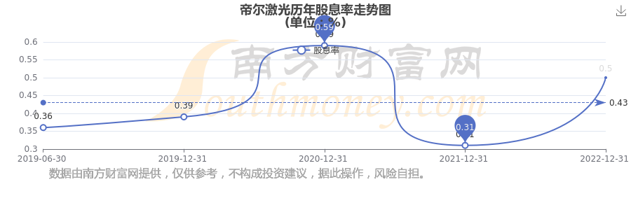 近年帝爾激光年度股息率走勢如下圖: