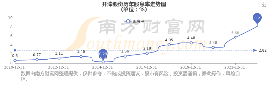 開灤股份最新一次公布的分紅方案:10派5.8元。