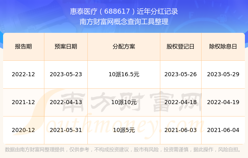 一、惠泰醫(yī)療(688617)股票分紅記錄