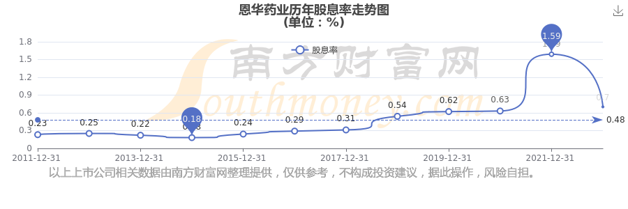 近年恩華藥業(yè)年度股息率走勢(shì)如下圖: