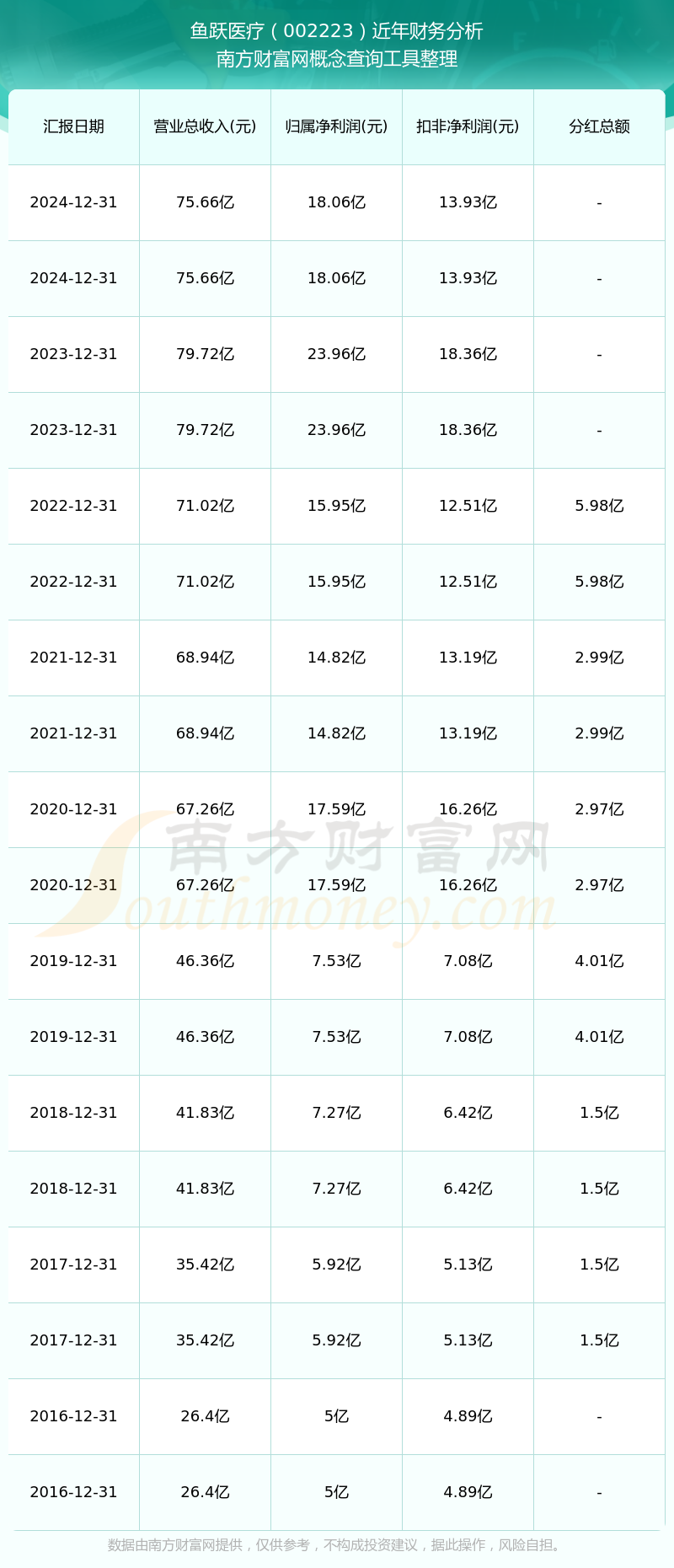 魚躍醫(yī)療歷年分紅派息情況如下表所示: