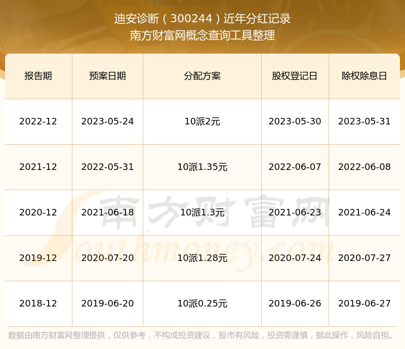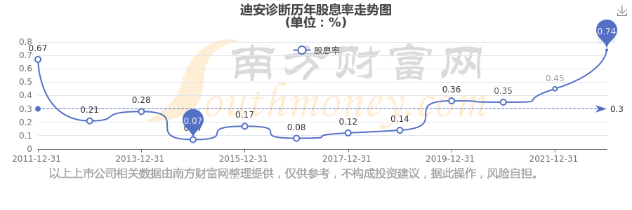 迪安診斷最新一次公布的分紅方案:10派2元。