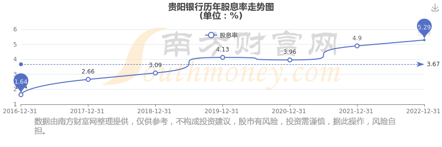 貴陽銀行歷年股息率走勢如下圖:
