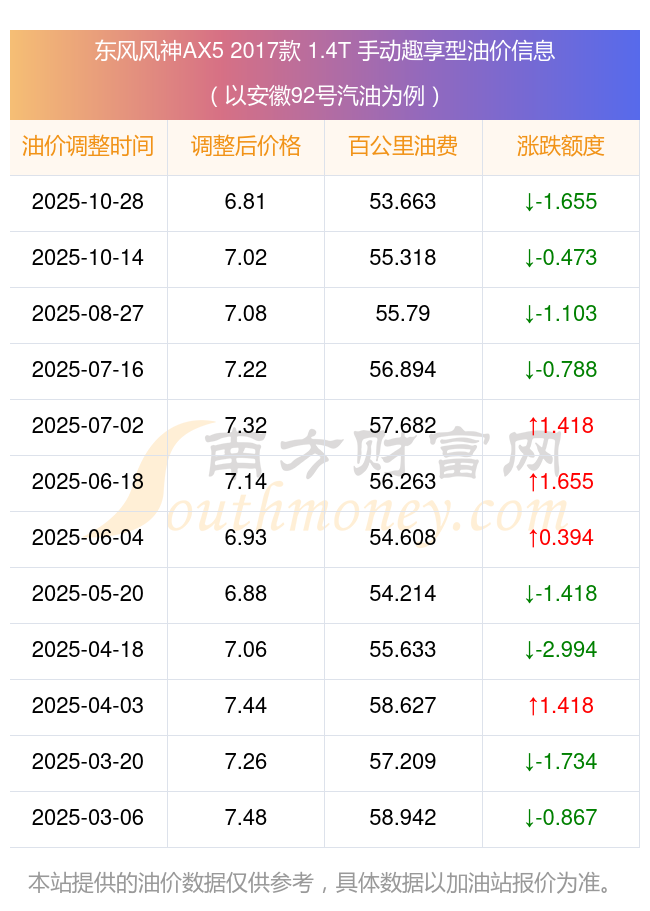 按10月28日92號(hào)汽油最新調(diào)整價(jià)格6.81元每升來計(jì)算(以安徽為例),該車型百公里平均油費(fèi)為53.663元,按上一輪10月14日調(diào)整價(jià)格7.02元每升來計(jì)算,百公里平均油費(fèi)為55.318元,對(duì)比上一輪少花1.655元,下一輪油價(jià)調(diào)整時(shí)間為11月10日24時(shí)。