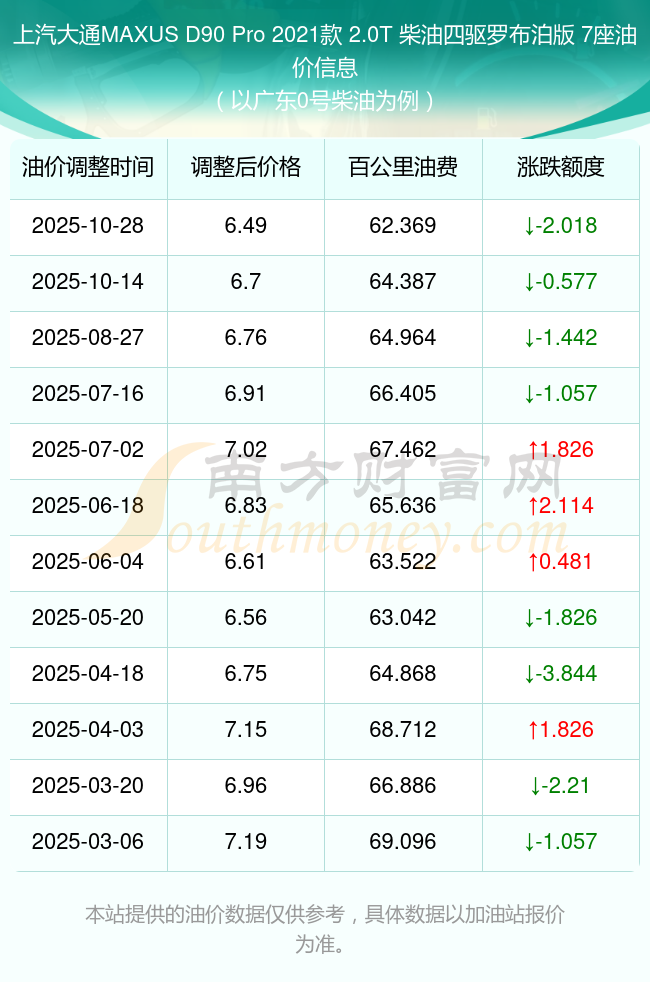 根據(jù)10月28日0號柴油最新調(diào)整價格6.49元/升來計算(以廣東為例),該車型每百公里的平均油費是62.369元,上一輪10月14日調(diào)整價格6.7元每升來計算,每百公里的平均油費是64.387元,對比上一輪少花2.018元,下一輪的油價調(diào)整時間是11月10日24時。