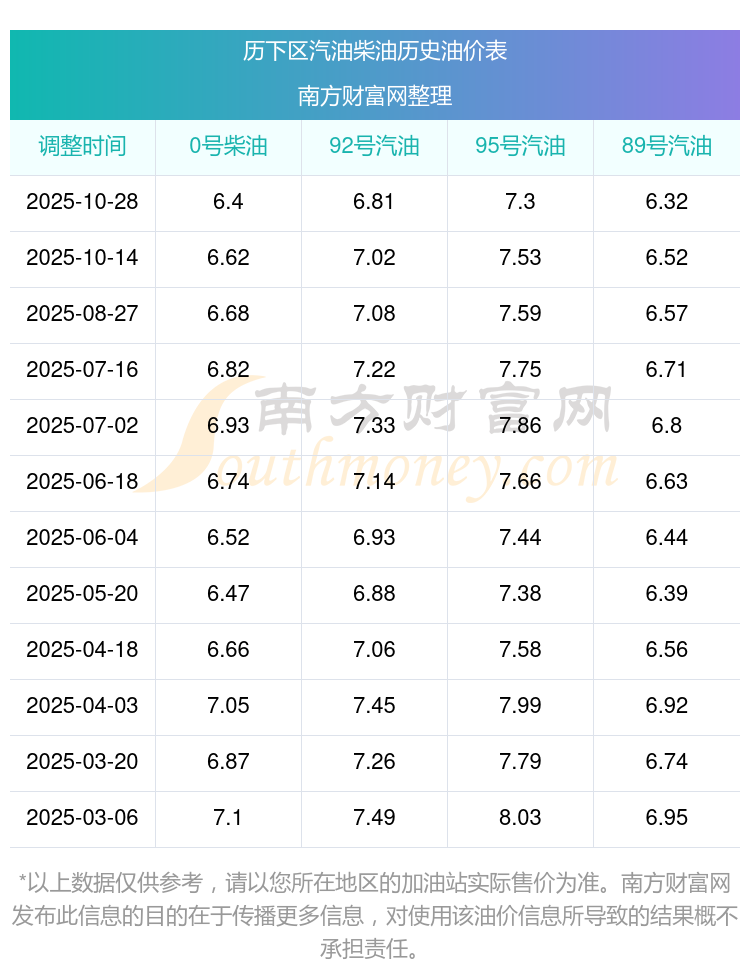 2025年歷下區(qū)汽油價(jià)格一覽表
