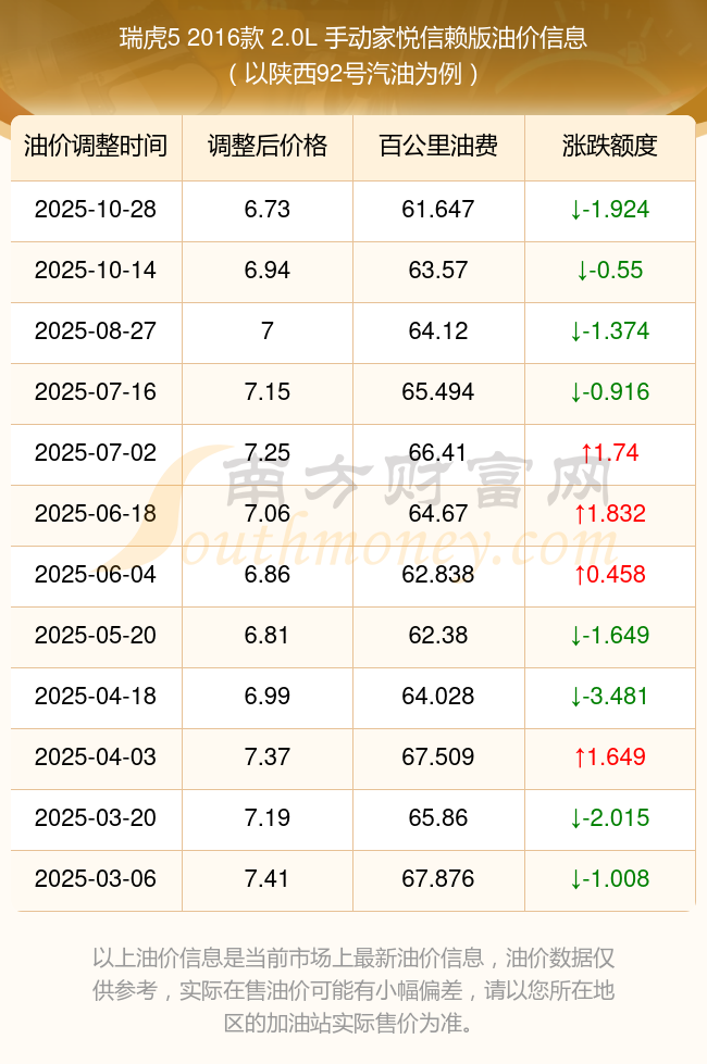 根據(jù)10月28日92號汽油最新調整價格6.73元/升來計算(以陜西為例),該車型每百公里的平均油費是61.647元,上一輪10月14日調整價格6.94元每升來計算,每百公里的平均油費是63.57元,對比上一輪少花1.924元,下一輪的油價調整時間是11月10日24時。