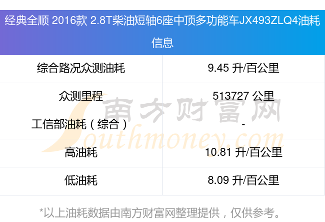 根據(jù)車主實(shí)測(cè)數(shù)據(jù),該車型低油耗為8.09升每百公里,高油耗為10.81升每百公里,綜合路況眾測(cè)油耗為9.45升每百公里。
