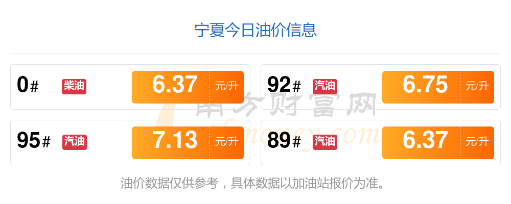 11月2日寧夏汽油柴油價(jià)格最新價(jià)一覽表