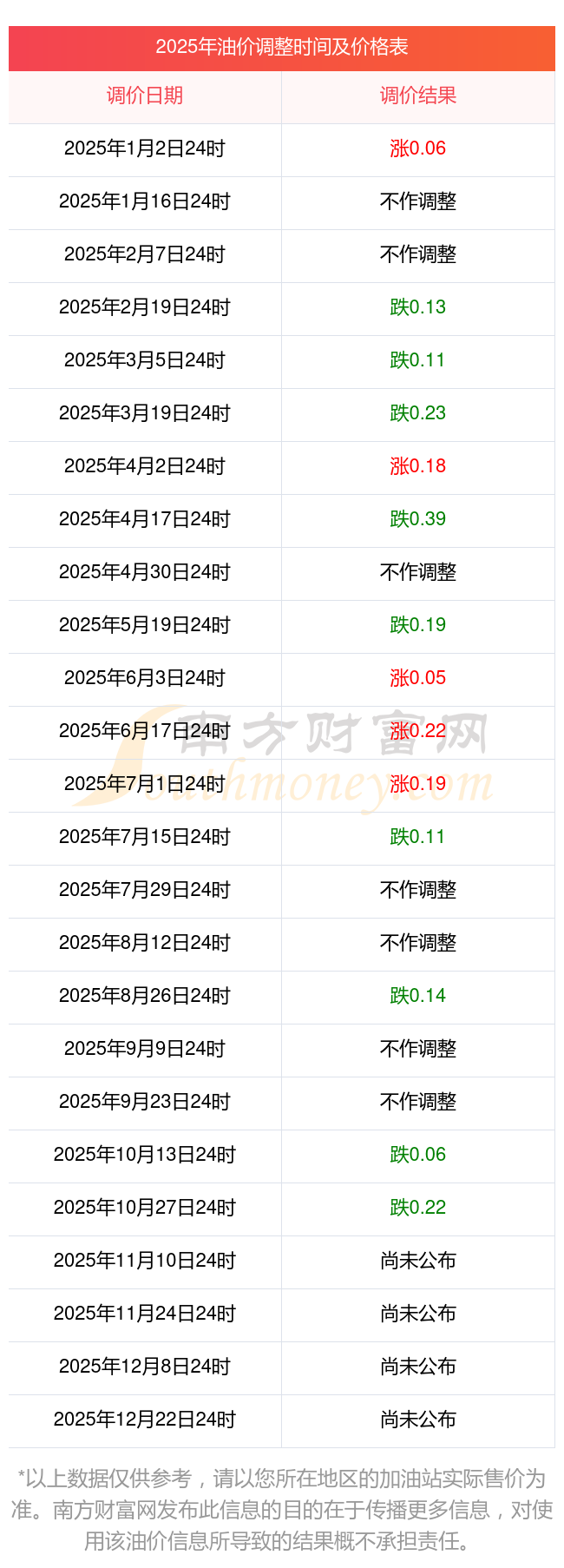 2025年長安區(qū)油價(jià)調(diào)整時(shí)間表
