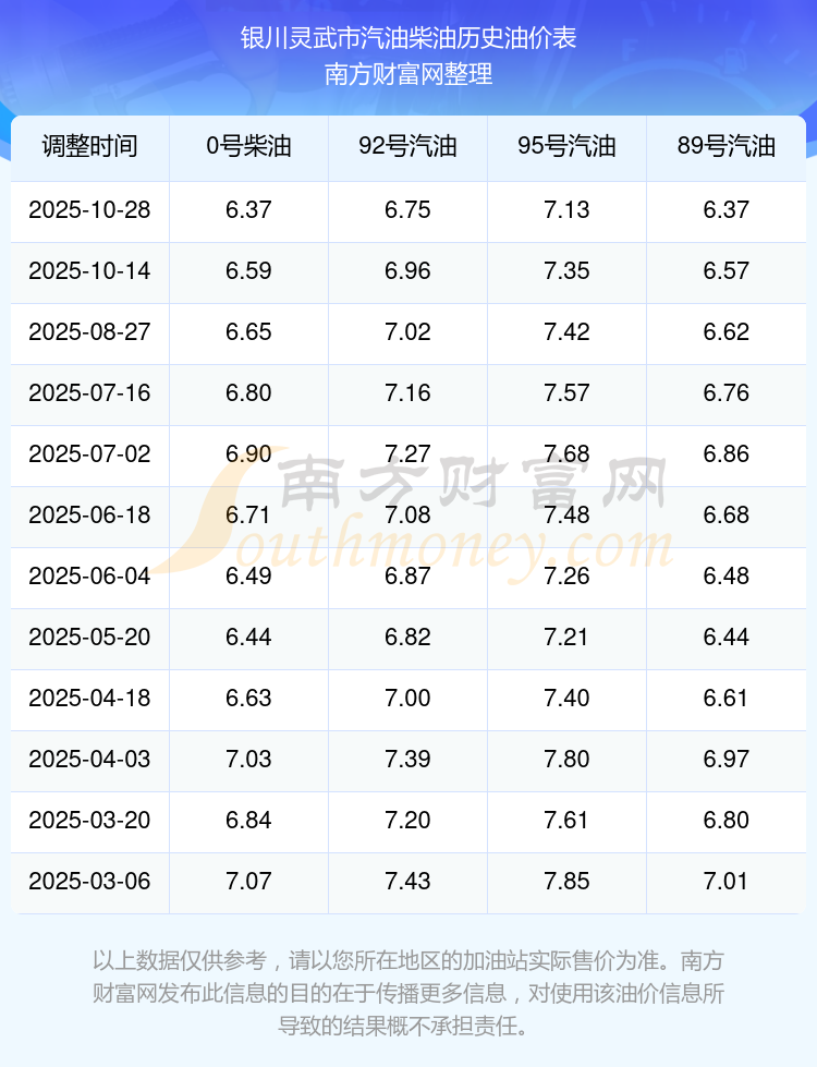 以上數(shù)據(jù)僅供參考,請(qǐng)以您所在地區(qū)的加油站實(shí)際售價(jià)為準(zhǔn)。南方財(cái)富網(wǎng)發(fā)布此信息的目的在于傳播更多信息,對(duì)使用該油價(jià)信息所導(dǎo)致的結(jié)果概不承擔(dān)責(zé)任。