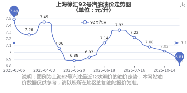 11月2日,汽油、柴油每升的價格為10月28日調(diào)整后的價格,具體為:92號汽油為6.81元,跌了0.21元,跌幅達2.99%;95號汽油為7.24元,跌了0.23元,跌幅達3.08%;89號汽油為6.35元,跌了0.2元,跌幅達3.05%;0號柴油為6.45元,跌了0.22元,跌幅達3.3%。下一輪油價調(diào)整時間11月10日24時,距離現(xiàn)在還有8.95天。