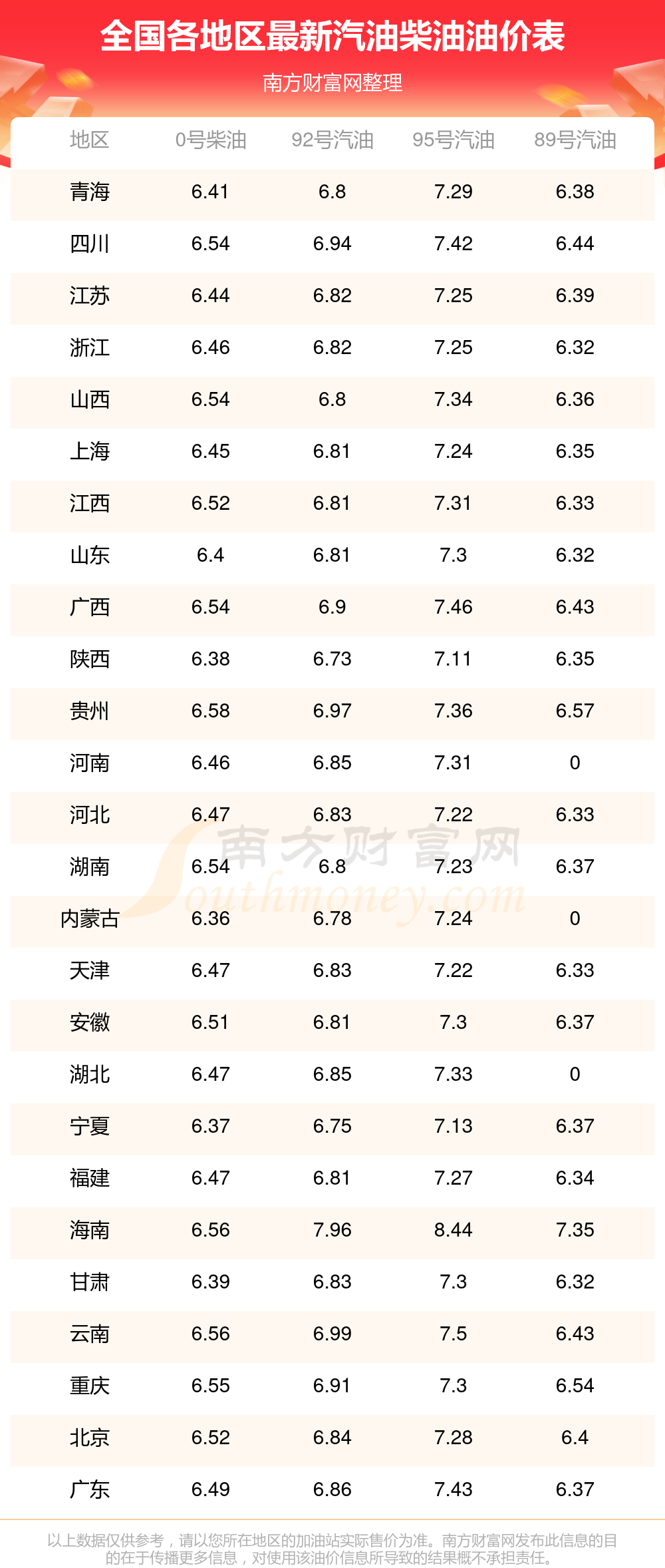 油價數(shù)據(jù)僅供參考,請以您所在地區(qū)的各加油站報價為準(zhǔn)。