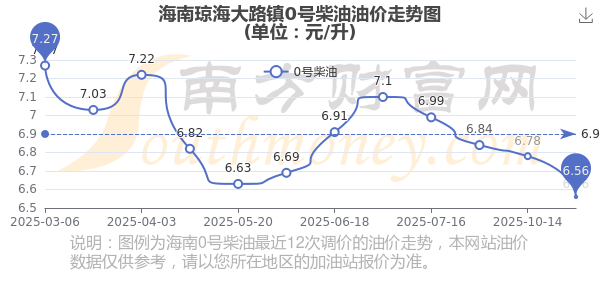 海南瓊海大路鎮(zhèn)0號柴油歷史油價走勢圖