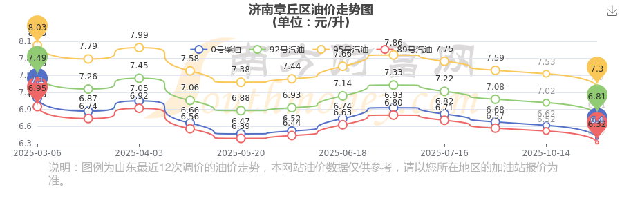 濟(jì)南章丘區(qū)11月2日95號(hào)汽油歷史油價(jià)調(diào)整走勢圖