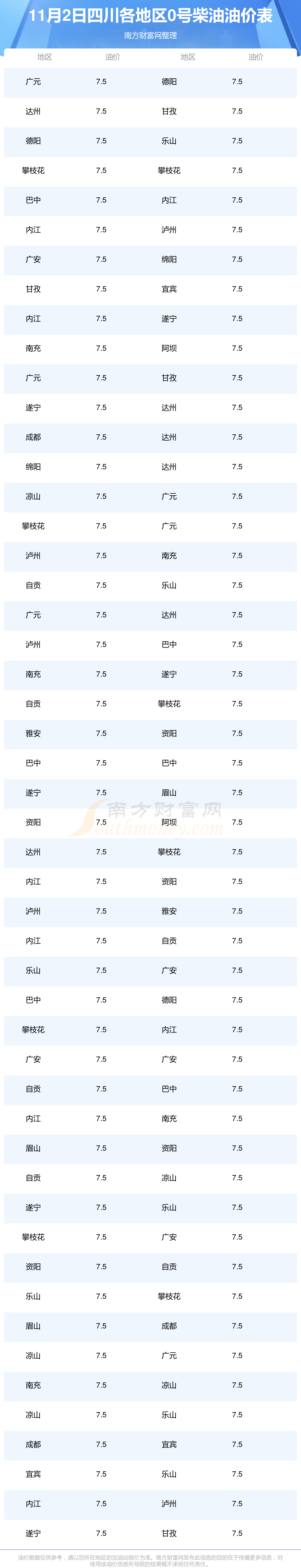 2025年11月2日四川0號(hào)柴油最新價(jià)格一覽表