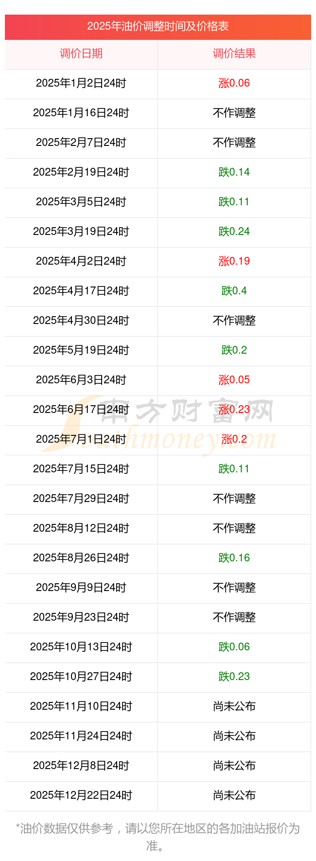 2025年遵義赤水市11月2日油價調(diào)整時間表