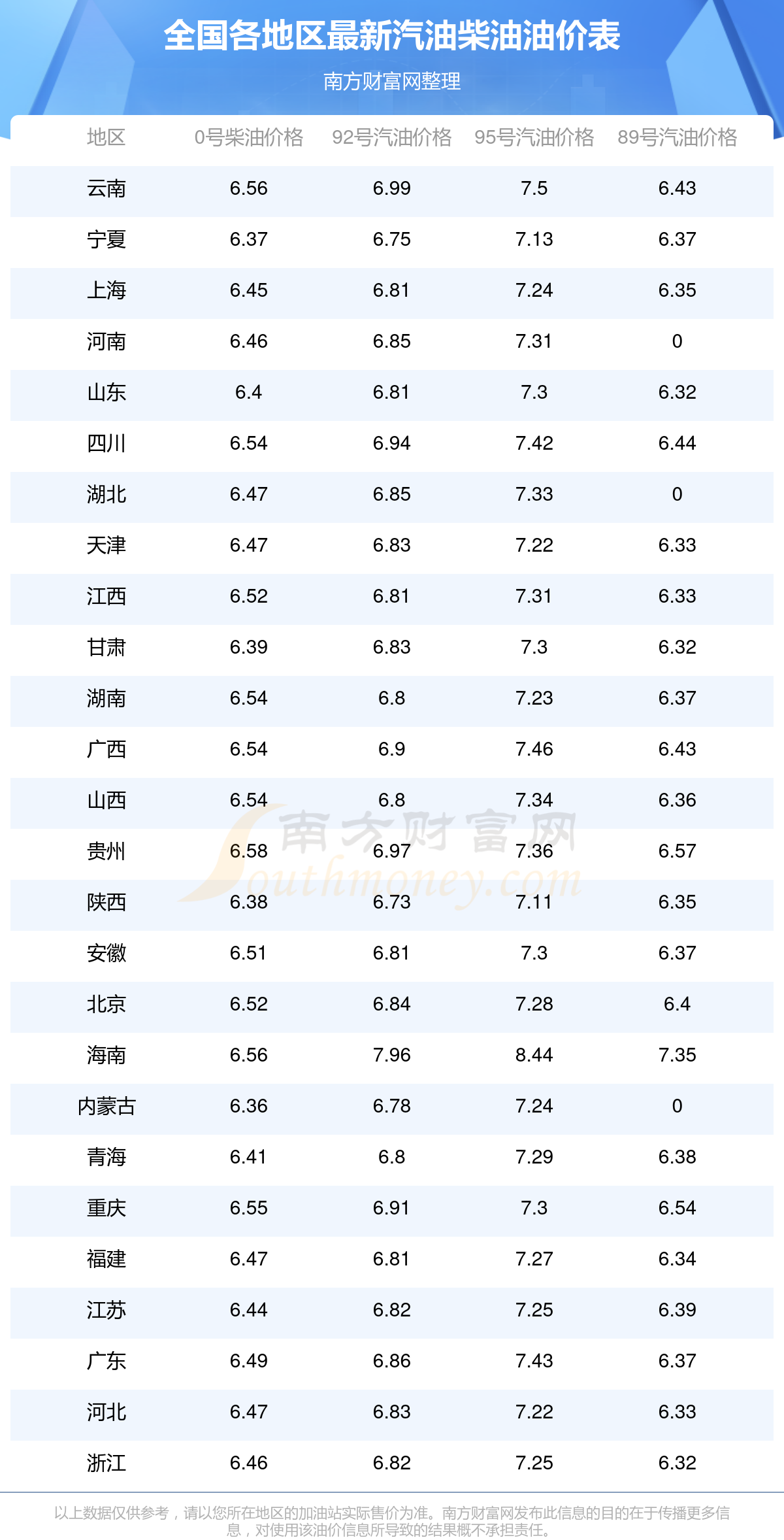 全國(guó)各地區(qū)油價(jià)今日價(jià)格查詢