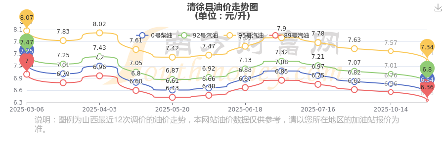 11月2日清徐縣0號柴油歷史油價走勢圖