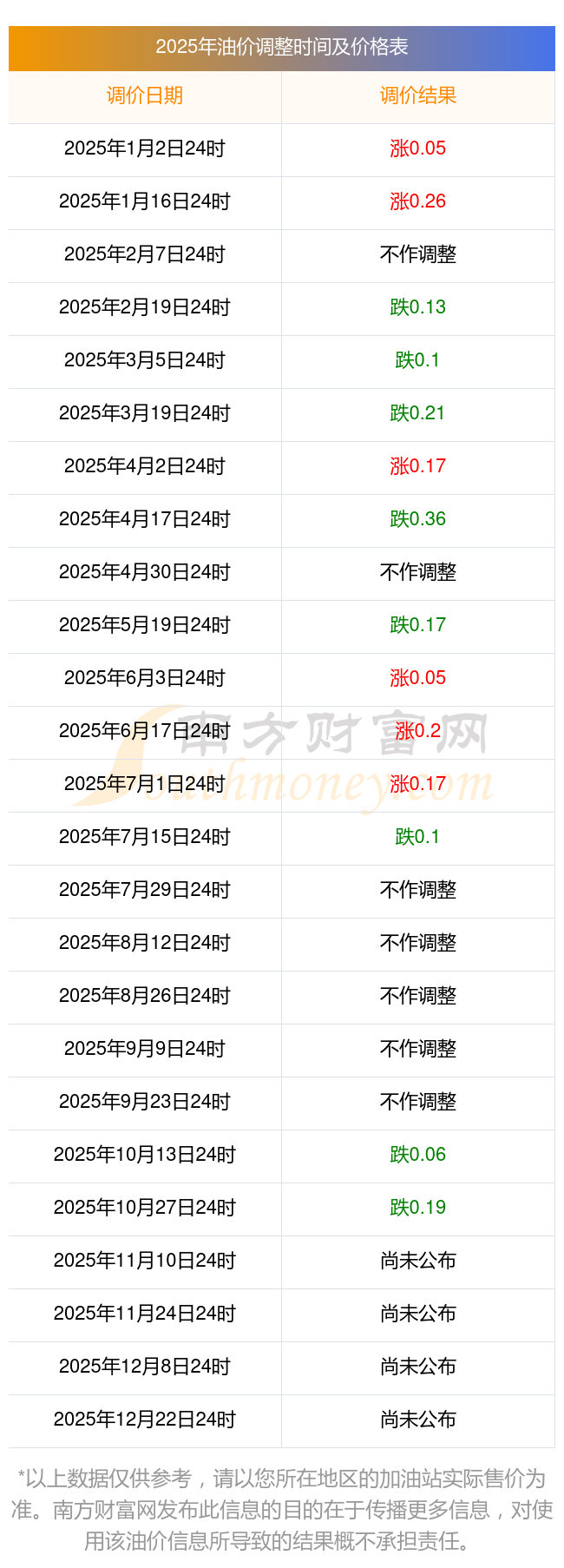 甘肅張掖2025年汽油價格調(diào)整時間一覽表