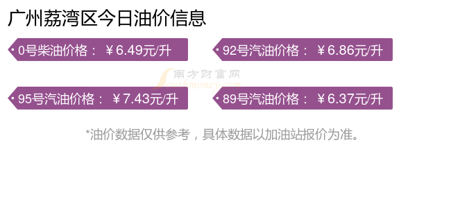 油價(jià)調(diào)整最新消息:下一輪油價(jià)調(diào)整時(shí)間11月10日24時(shí)。廣州荔灣區(qū)汽油、柴油11月2日的價(jià)格是多少錢一升?詳情為:92號汽油為6.86元,跌了0.21元;95號汽油為7.43元,跌了0.23元;89號汽油為6.37元,跌了0.2元;0號柴油為6.49元,跌了0.21元,本次油價(jià)的調(diào)整時(shí)間為10月28日。