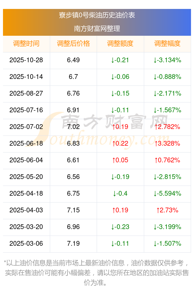 寮步鎮(zhèn)0號柴油油價今日價格查詢