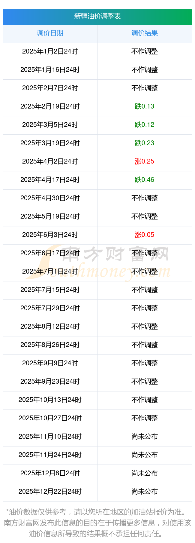 烏魯木齊2025年油價(jià)調(diào)整時(shí)間及價(jià)格表