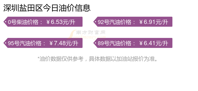 深圳鹽田區(qū)汽油柴油11月30日的價(jià)格每升多少錢?具體為:92號(hào)汽油為6.91元,下調(diào)了0.05元;95號(hào)汽油為7.48元,下調(diào)了0.06元;89號(hào)汽油為6.41元,下調(diào)了0.05元;0號(hào)柴油為6.53元,下調(diào)了0.06元,本輪油價(jià)的調(diào)整時(shí)間為11月25日。